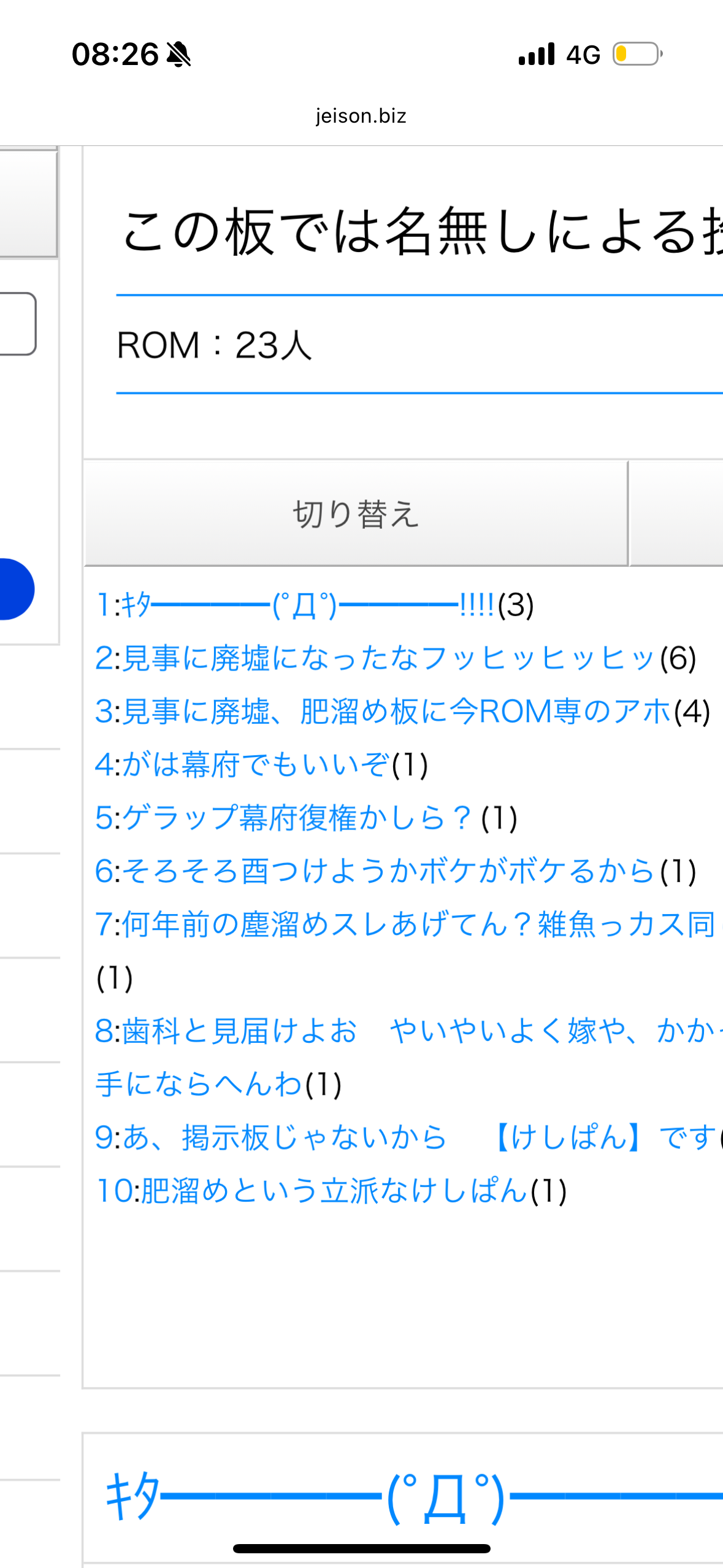 ただ、いつもならROM数がえらいことになるのは喧嘩板なんだが