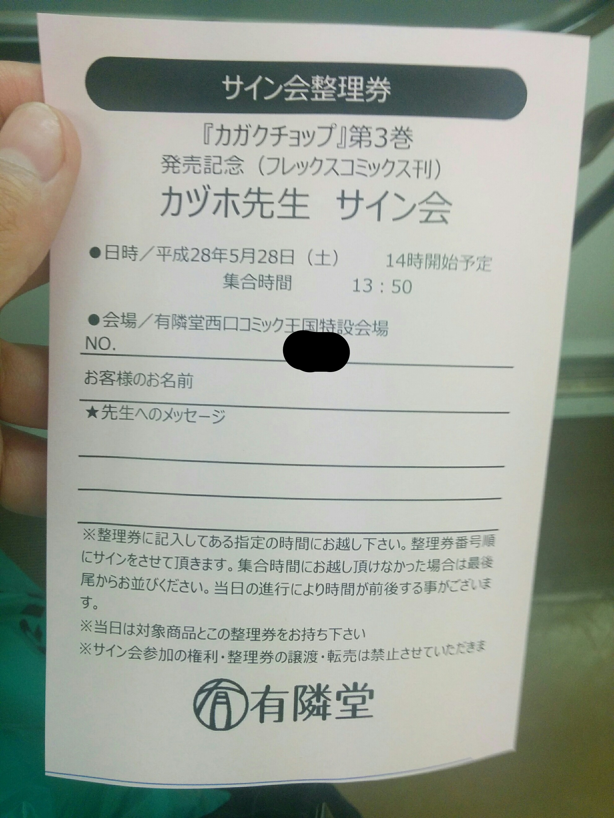 ぼく、カヅホ先生サイン会の整理券を手に入れる