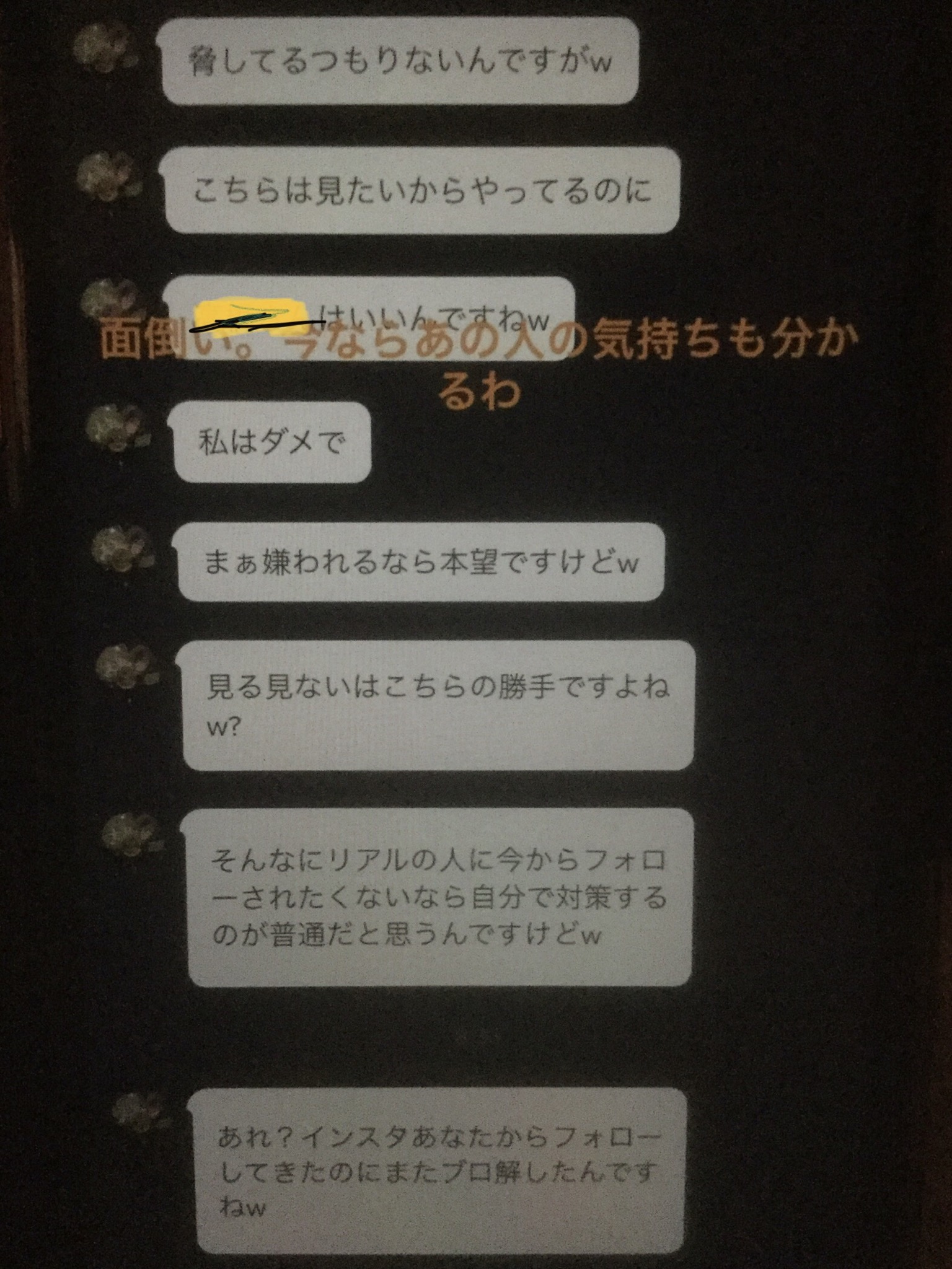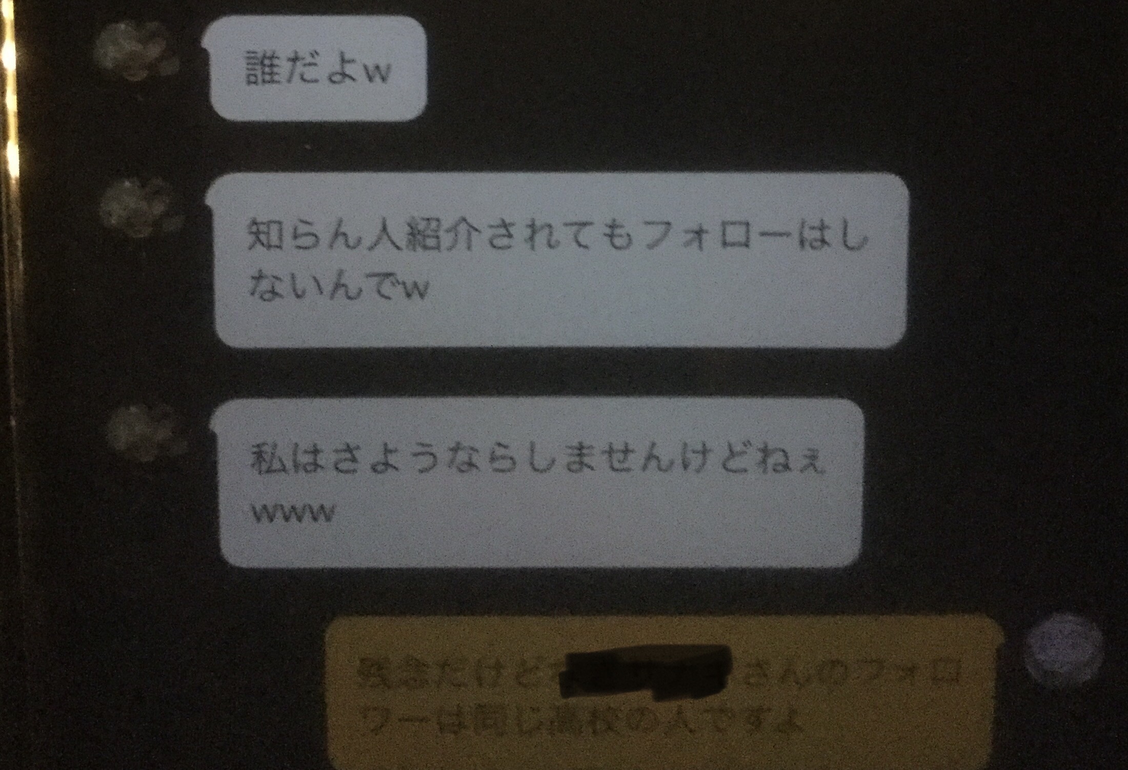 悪いけど趣味合わないから断ったのと他の人のTwitter垢晒したからよwwwwwあれさメッセージあるならスクショしろよwwwww