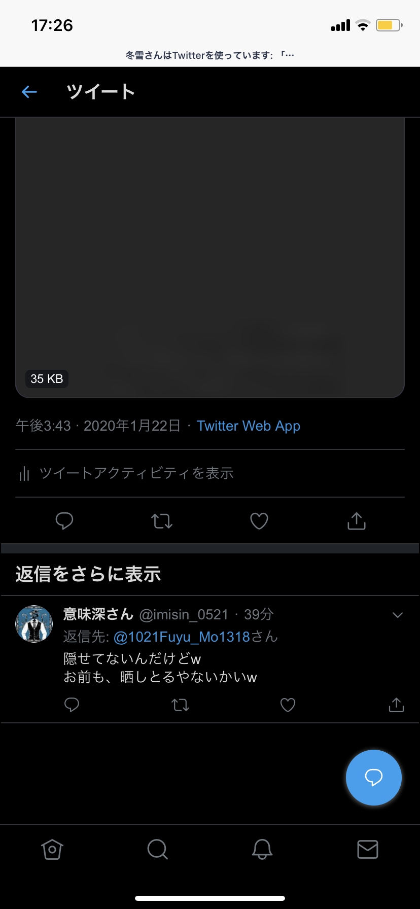 まだ監視してくるんですかwwwww俺の別垢をわざわざ見る位wwwww嫌いなら見なきゃ良いのに