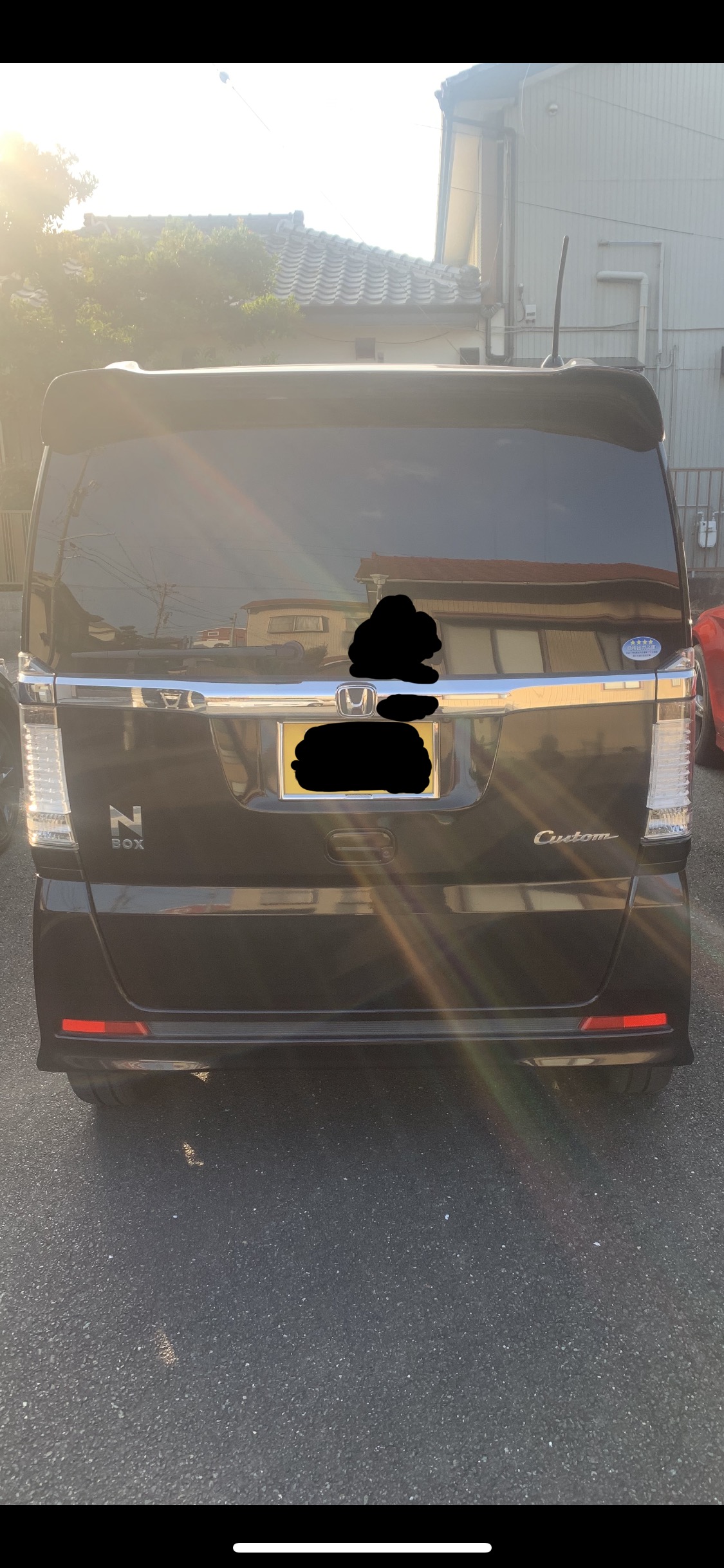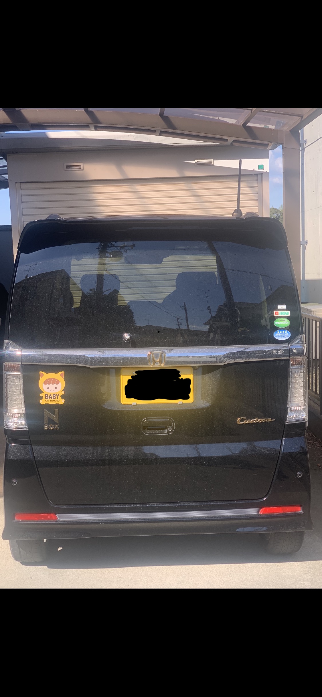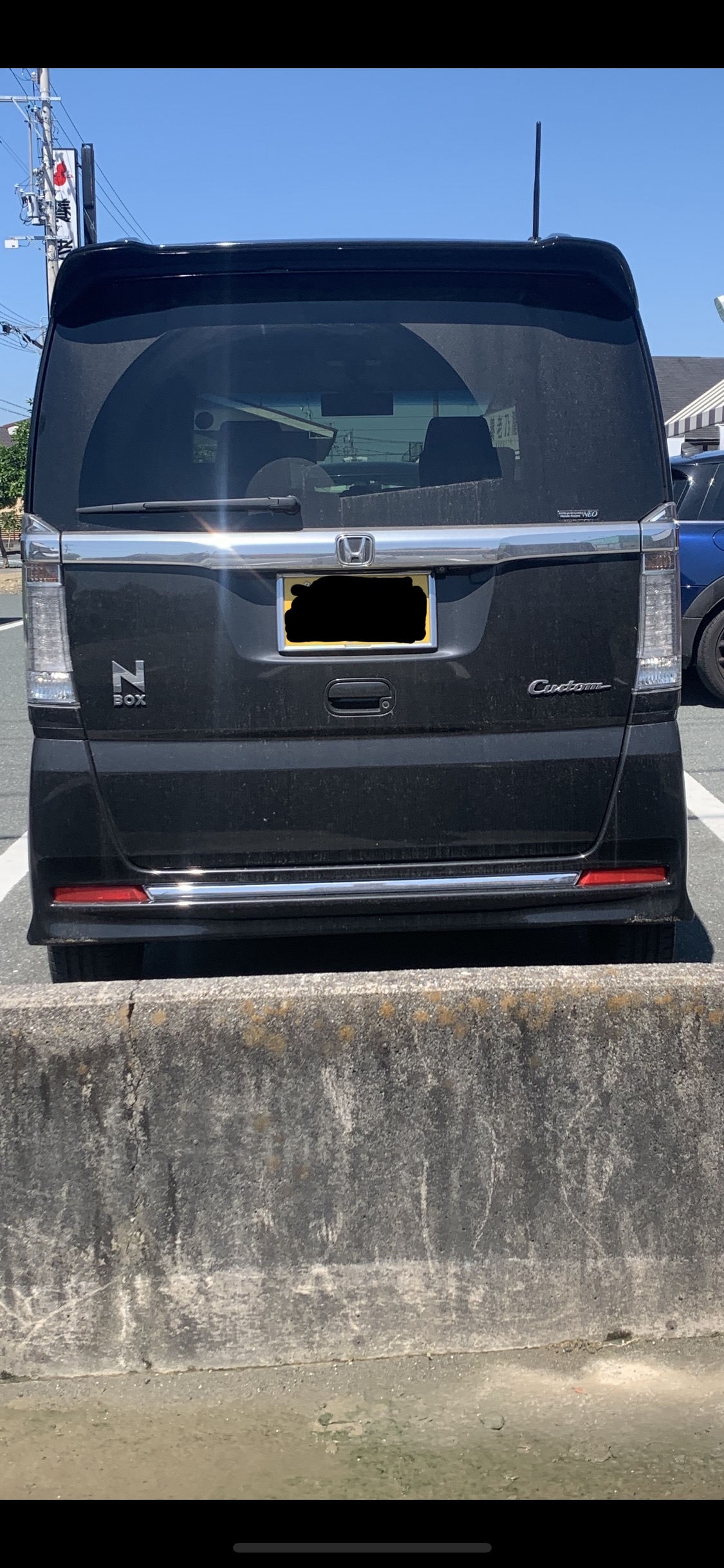 本当可哀想。黒いNBOXたん。後ろから