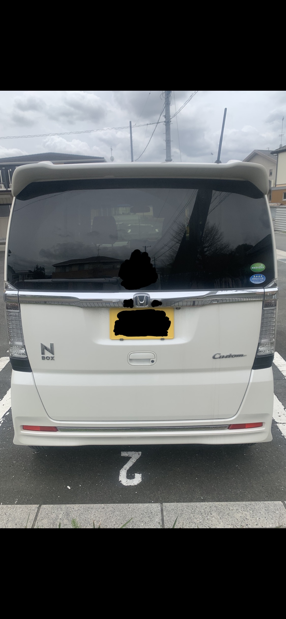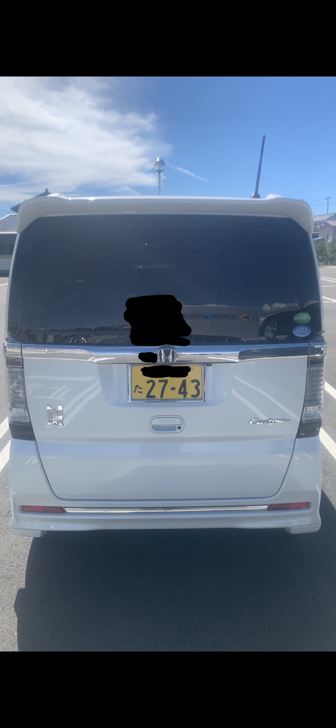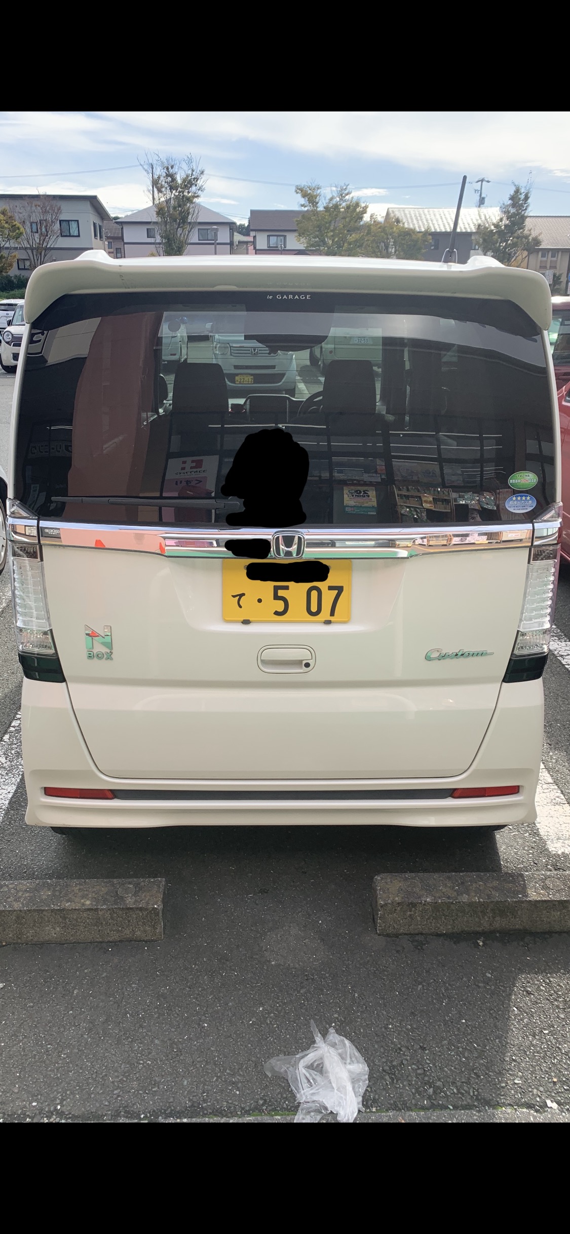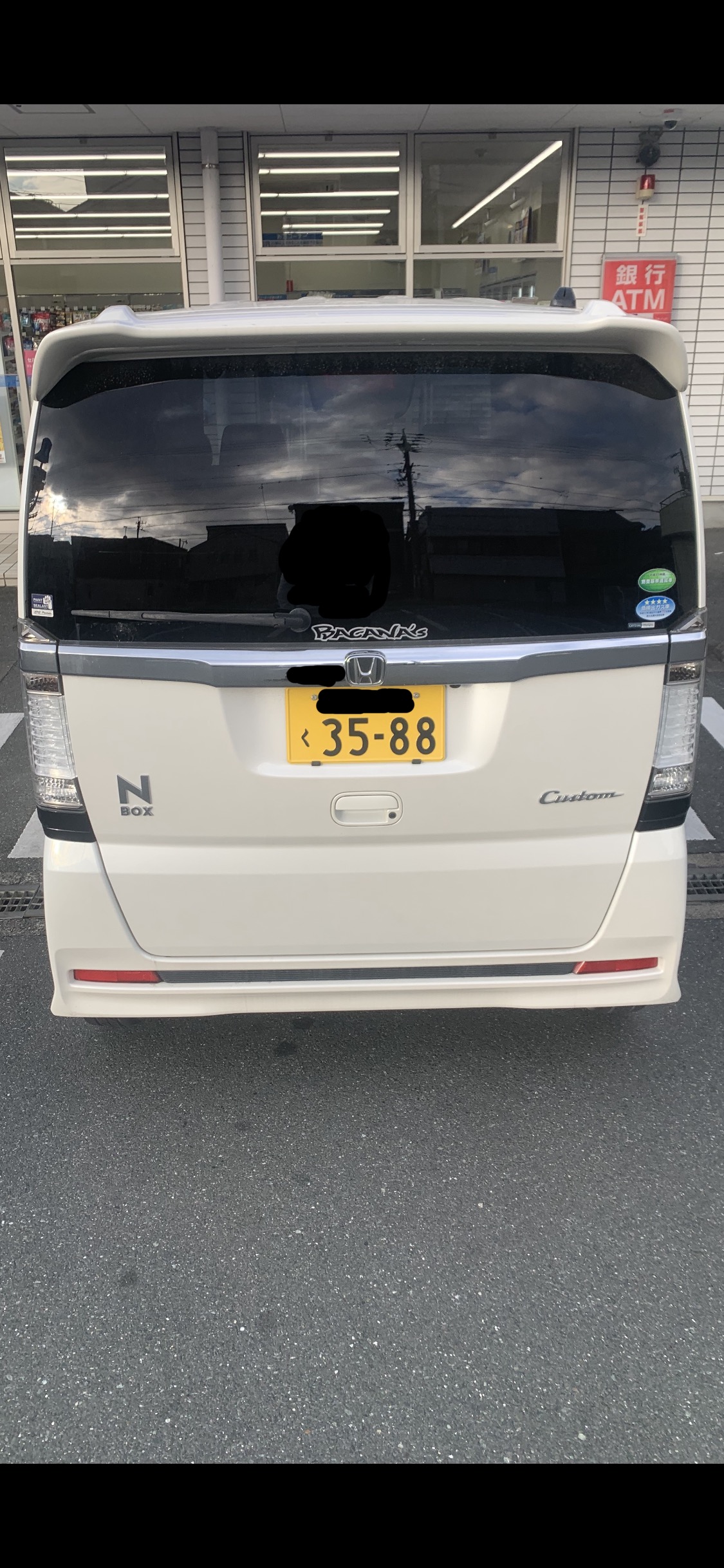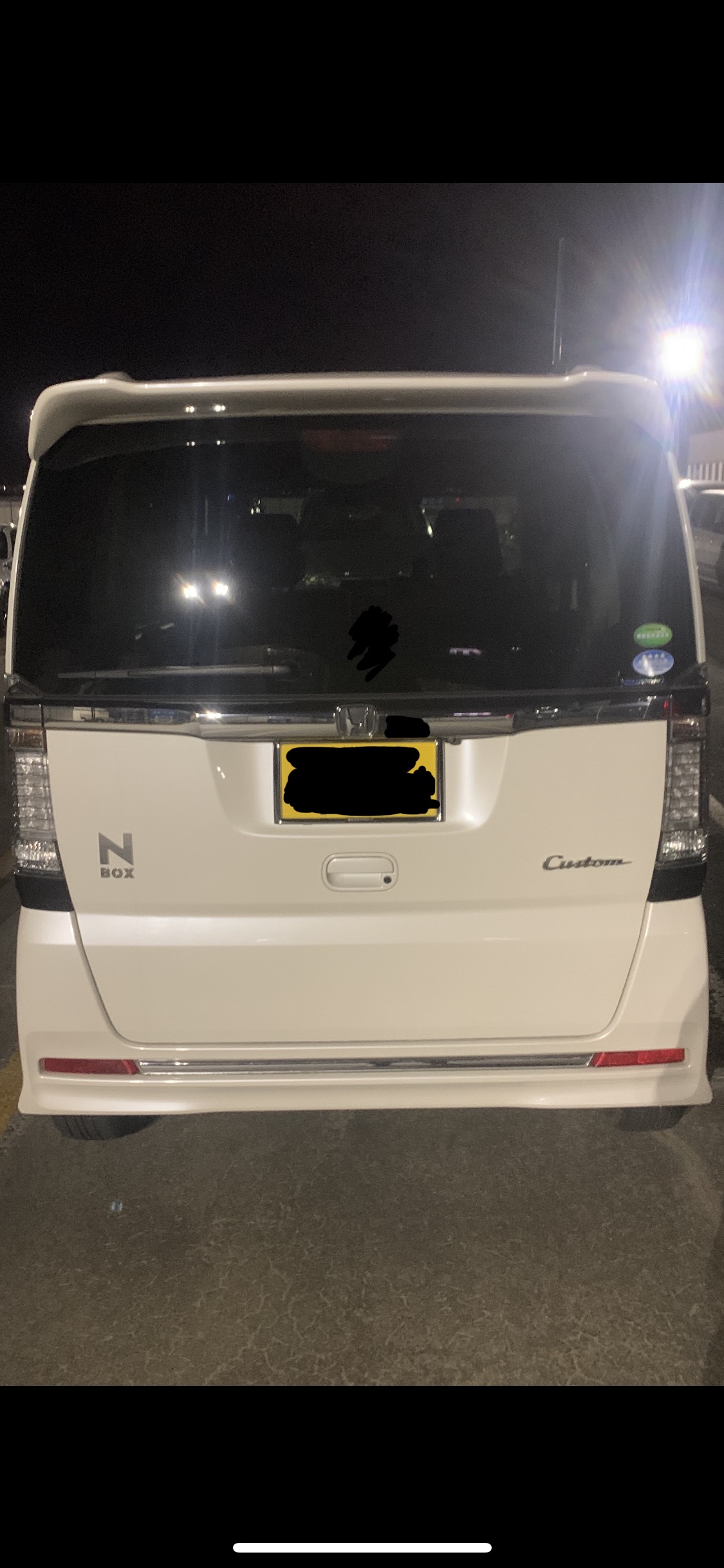 201枚目と同じ馬鹿女が乗る白いNBOXカスタムたん。ドンキーの駐車場に停まって、我慢汁お漏らししてたー!本当白いNBOXカスタムたん可哀想過ぎる!馬鹿女に乗られて