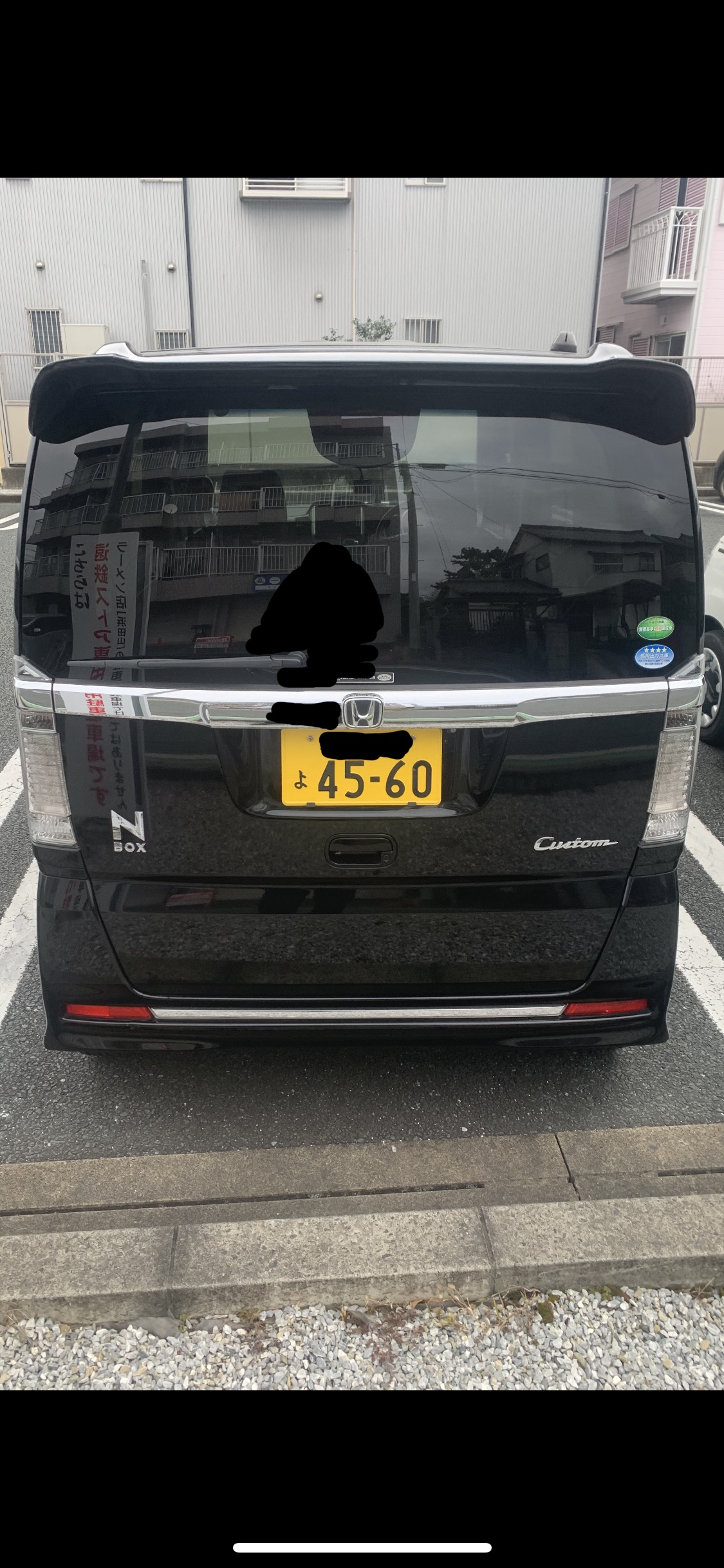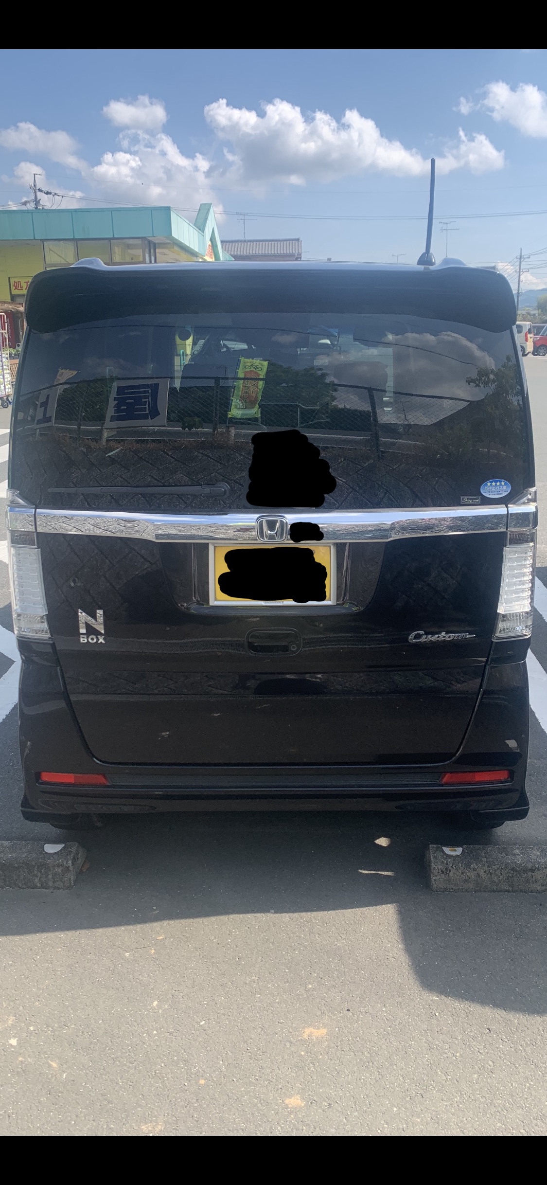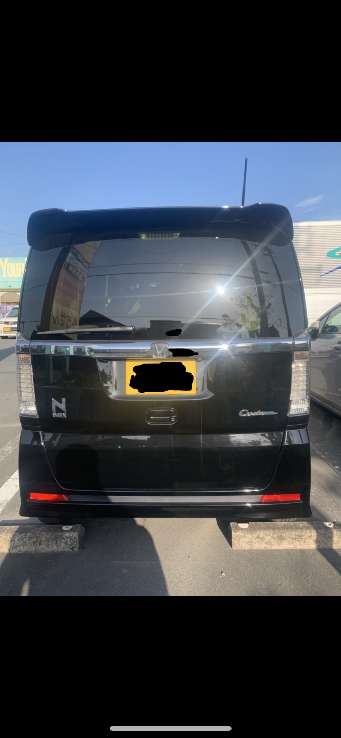 もう乗らないで欲しい可哀想すぎる。黒いNBOXたん。後ろから
