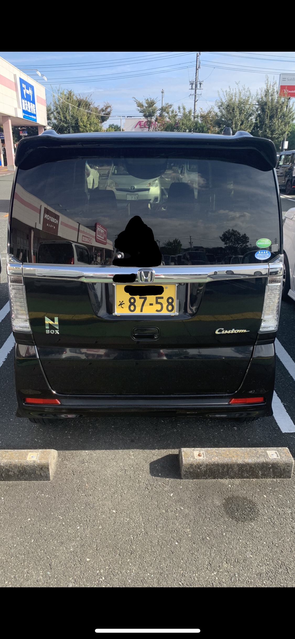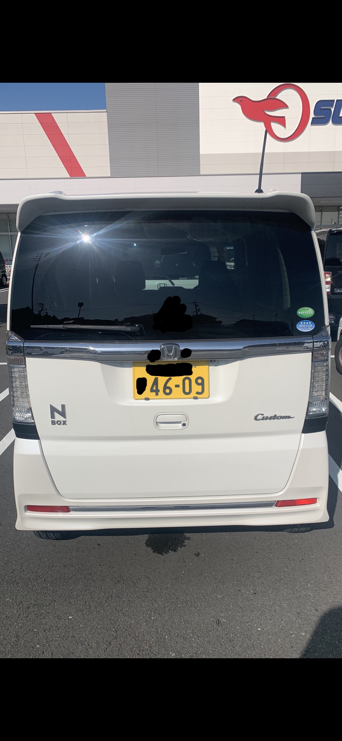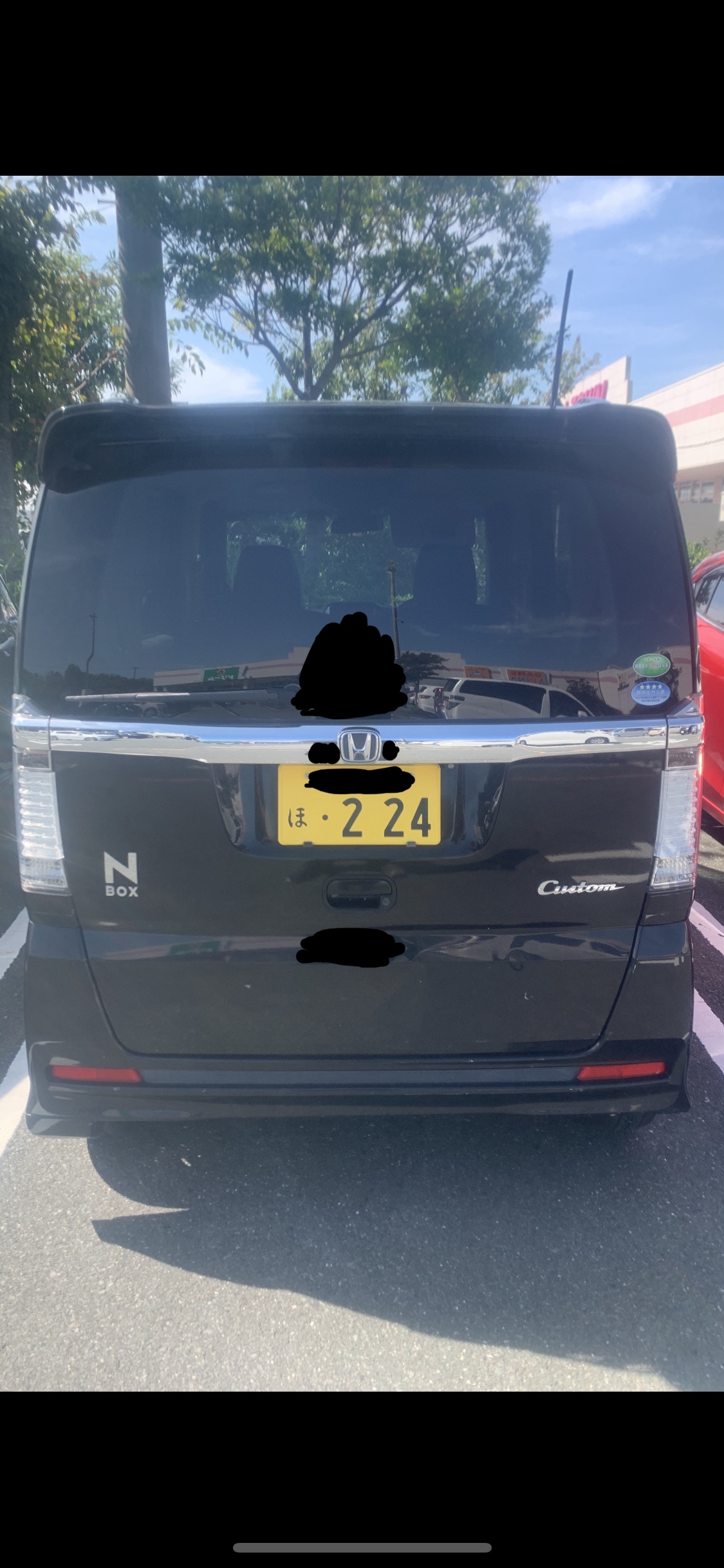 もう乗らないで欲しい可哀想すぎる。黒いNBOXたん。後ろから